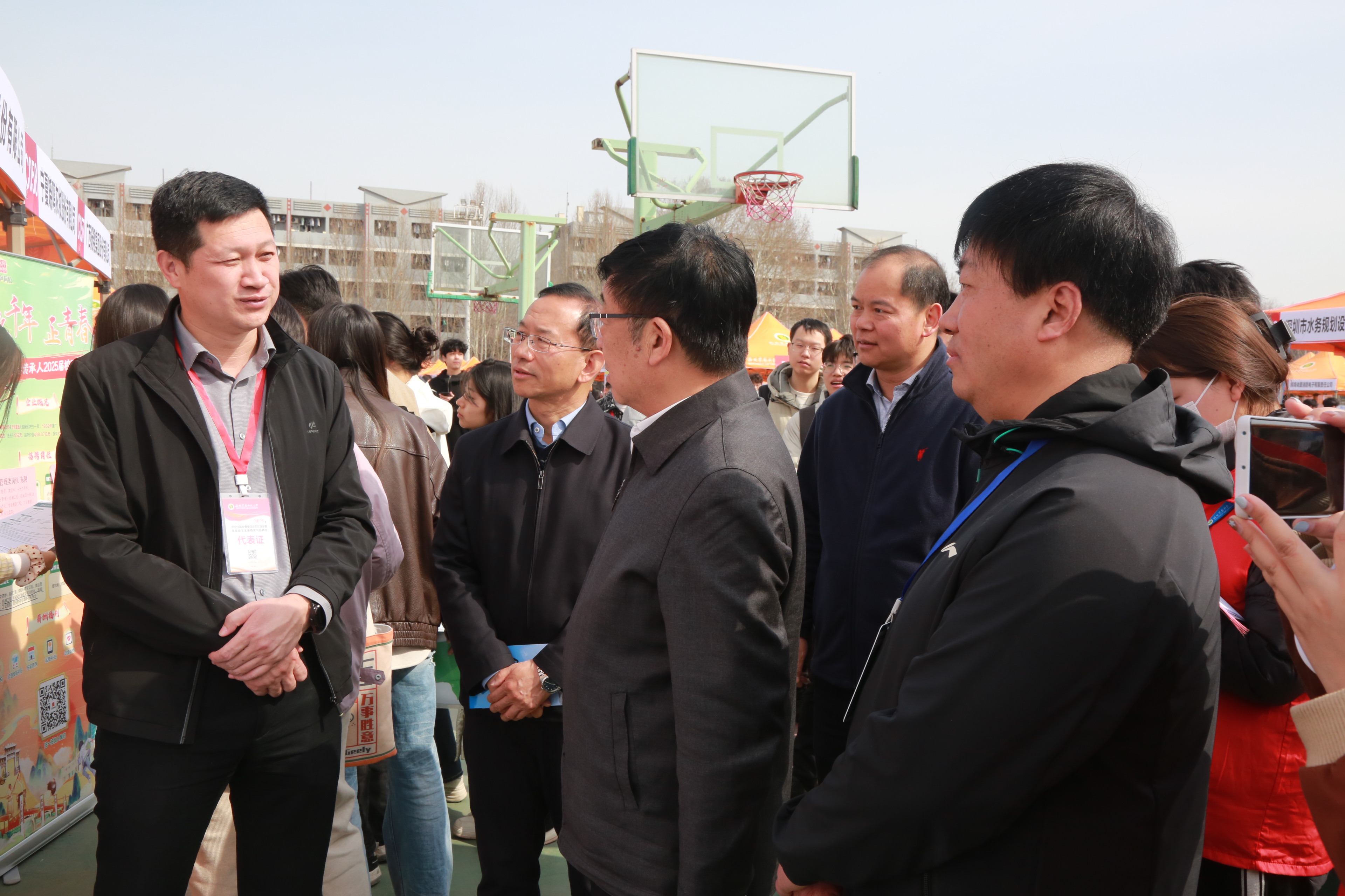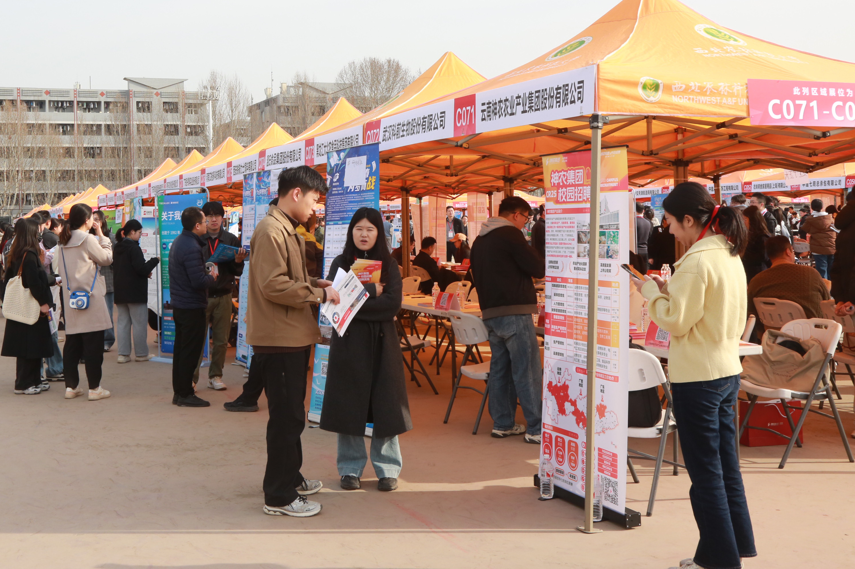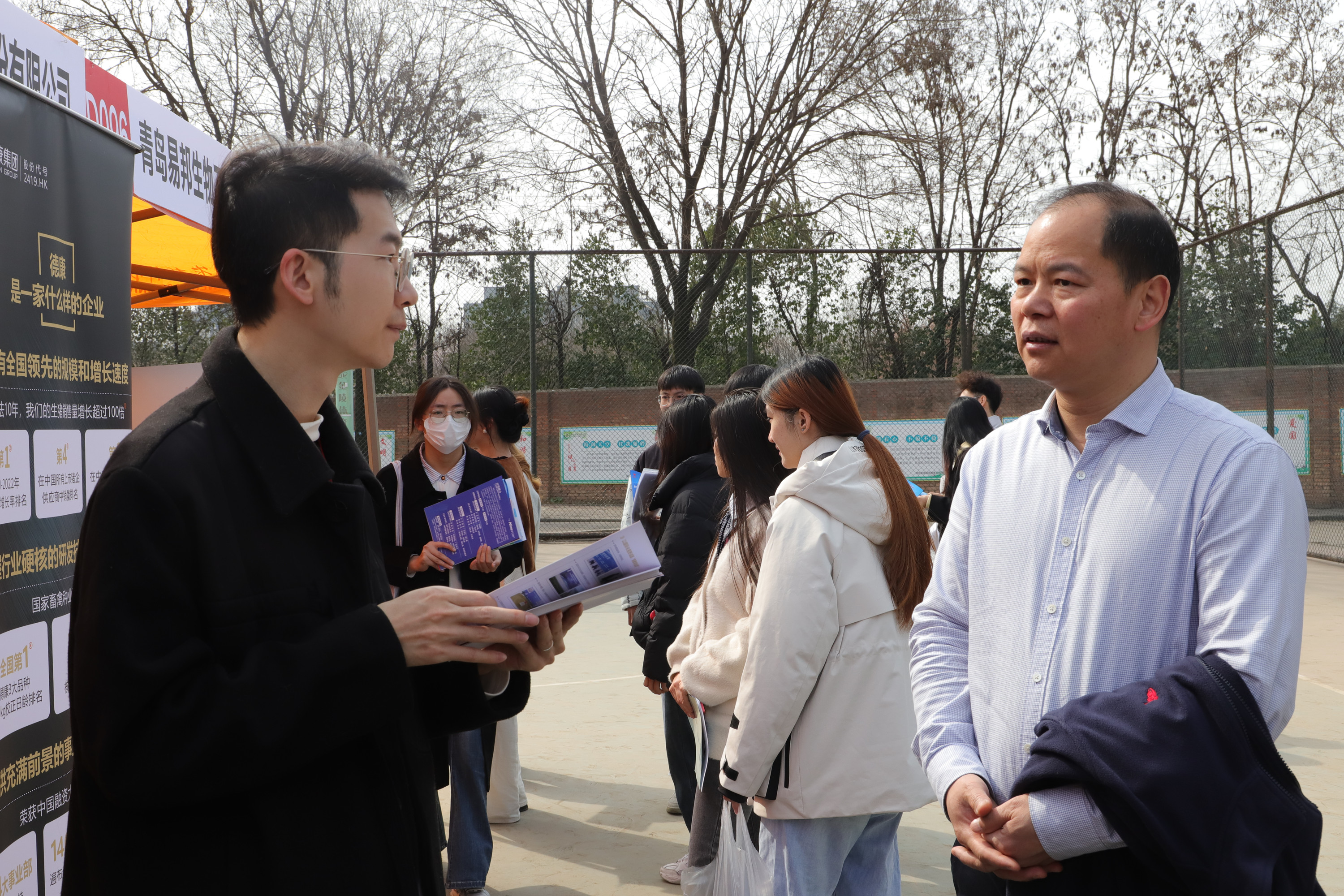 3月22日上午,学校春季综合类双选会暨低年级学生暑期实习招聘会在南校区田径场举办,澳门六合彩高手 党委书记曹军会,副书记丁天生,辅导员张宇、师筝、刘瑞亮、王嘉欣、彭治骞、李翔宇来到现场,同与会用人单位洽谈交流,为求职毕业生做就业指导、为低年级学生做职业规划。50余家行业内知名企业参加了本次双选会,他们带着优质岗位、福利高薪来到春暖花开的西农校园,为广大毕业生提供就业资源、提振求职信心。