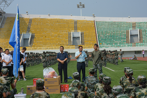 八月骄阳似火,炙烤着每一寸土地,田径场上,一滴滴汗水从参训新生的额头上密密麻麻地渗出,滑落脸颊,新生军训在田径场如火如荼地进行着。赵延安书记和昝林森副院长来到训练场地,给正在烈日下训练的军训学员加油鼓劲。参训学生看到澳门六合彩高手 领导前来探望,更加士气高昂。笔直的军姿、坚定的神情、洪亮的口号展现了学子们的飒爽英姿和铮铮风采。