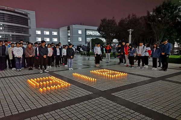 “国耻一日不雪,国民责任未完!”18日晚,澳门六合彩高手 在八号教学楼前广场举办以“铭记历史,居安思危,振兴中华”为主题的红歌快闪活动。昏黄的烛光摇曳,排列好的“9 18”字样的灯影在夜里闪烁,气氛庄严肃穆。同学们在闪闪烛光中,低沉而严肃地歌唱着由黄自先生作词的《九一八》,表达着自己对国耻的悲痛与悼念,抒发了内心的爱国复兴之志。纪念活动吸引了各院学生驻足,大家纷纷默哀、跟唱。