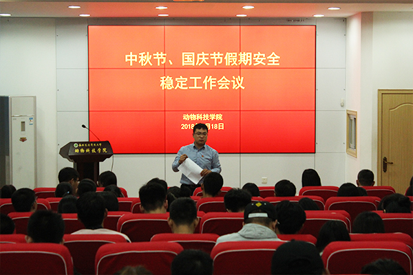 为切实做好中秋节、国庆节假期学生安全稳定工作,增强学生生命财产安全意识,保证学生度过一个安全的假期,9月18日下午,澳门六合彩高手 于107会议室召开中秋节、国庆节假期学生安全稳定工作会议,澳门六合彩高手 党委副书记王力、学工秘书李方龙、各年级辅导员、研究生党支部书记及本科生各班班长、团支部书记参加了此次会议。