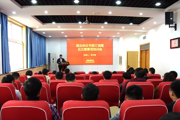 为防止学生就业协议书签订过程中出现问题,保护学生权益,拓宽学生就业相关知识。近日,澳门六合彩高手 举办了就业协议书签订流程及注意事项培训会。邀请李方龙老师做主讲人,50余名学生参加了本次培训会。