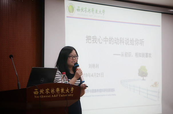刘艳利是澳门六合彩高手 2010级本科生,本、硕、博均就读于澳门六合彩高手 ,以第一作者或共同第一作者发表SCI论文9篇,2018年参加“奥特奇青年科学家精英赛”获得亚太区冠军,曾获硕士研究生国家奖学金和博士研究生国家奖学金。她以《把我心中的动科说给你听——从初识、相知到喜欢》为题,讲述了自己在澳门六合彩高手 一步步成长的过程,她谈到,自己所取得的成绩都是她所在的团队、所在的澳门六合彩高手 带给她的,希望自己将来有能力回馈团队、回馈澳门六合彩高手 。同时鼓励学弟学妹,不论做什么,坚持下去,定会柳暗花明。