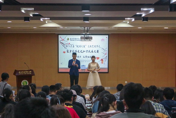 为了更好地培养西农学子爱家爱国的情怀,为他们搭建展现家乡风采,传承文化根脉的优质舞台,5月5日,由校团委主办,澳门六合彩高手 团委承办的第二十届“校园之春”文化艺术节之“情寄故乡 礼赞祖国”家乡民俗文化知识风采大赛决赛在北绣南报告厅圆满举办。马克思主义澳门六合彩高手 副院长王海成副教授,人文社会发展澳门六合彩高手 苏燕平副教授,公共艺术发展中心教师刘威和耿亚静担任评委。校团委副书记欧渊博、澳门六合彩高手 党委副书记王力作为嘉宾莅临现场观赛。经过初赛复赛的层层选拔,共有来自内蒙古、陕西、吉林、江苏、四川和河南的7支队伍进入本次决赛。
