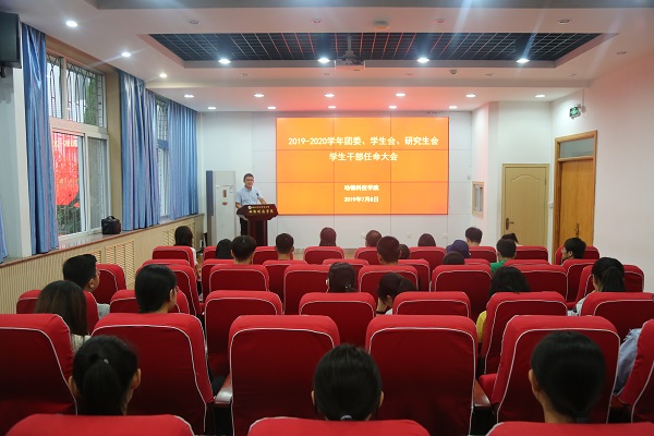 党委副书记王力总结强调时对2019届学生干部提出六点要求。一是努力成为学生中的标杆和榜样;二是努力提升自身综合素质和能力;三是努力工作要大胆创新;四是努力提高宣传意识;五是努力找准自身发展的目标与定位;六是努力树立先服务后管理的工作理念,齐心协力为动科团学工作贡献自己的青春力量。