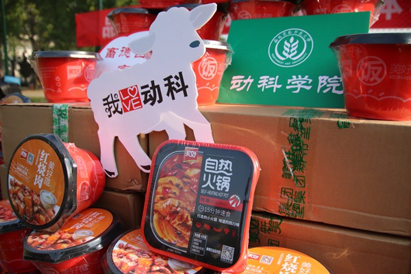 自热小火锅、咖喱鸡、红烧肉米饭、梅菜扣肉、美味香肠......军训场洋溢着一张张开心的笑脸。继8月30日和9月4日澳门六合彩高手 领导为新生们发放牛奶和羊奶等畜牧科技产品后,澳门六合彩高手 又为新生们带来了新希望六和集团研发的自热火锅、自热米饭等,并根据同学们的不同口味一一分发福利,这是军训以来澳门六合彩高手 开展的第三次慰问活动。