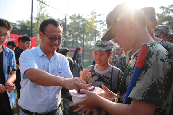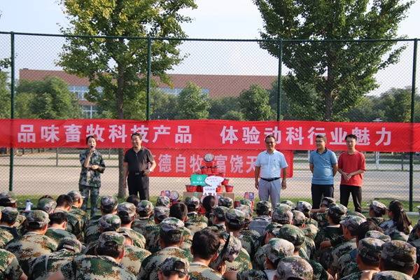 “军训已接近尾声,希望大家能享受这个过程,预祝大家取得好成绩”,姚军虎院长亲切地对参训新生说道。同时,姚院长以行业楷模新希望集团董事长刘永好为例,勉励同学们通过未来4至10年的学习,在行业里施展才华,为行业发展做贡献。姚院长谈到:“新希望集团董事长刘永好以养殖起家,如果用身价来评价成功,他曾是中国首富,目前新希望集团在海内外都有分公司,并且做得非常高端。事实表明,现代畜牧业生产已不是传统想象中喂猪、喂鸡,未来的畜牧养殖不仅能提供肉蛋奶等食品,更能为我们提供精神家园,为人类健康提供动物的模型。未来的学习还有好多仪器设备等着你们去操作,有很多技能等待你们掌握,希望大家成为知识与技能健全、有智慧、有能力、有爱心的一批青年学子。”