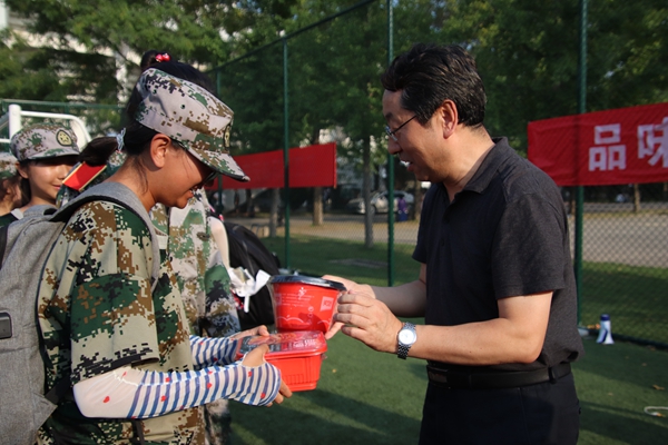9月7日下午,在2019级新生军事汇演前一天,炎热的军训场迎来了火锅盛宴,208份自热小火锅和美味香肠摆放整齐、造型别致。澳门六合彩高手 院长姚军虎、党委副书记王力一行来到北校区小足球场,亲切慰问参训新生,为军事汇演加油鼓劲。