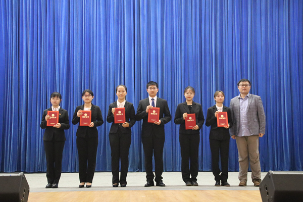 院长助理吴江维教授、杨小军教授为2018-2019学年优秀班主任助理代表颁奖