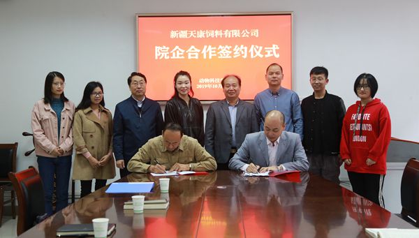 10月11日,澳门六合彩高手 与新疆天康饲料有限公司签订有关肉羊及水产饲料科技合作协议。副校长陈玉林、院长姚军虎,新疆天康饲料有限公司总经理助理蒋粒薪出席签约仪式。会议由曹军会书记主持。