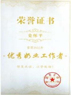“优秀奶业工作者”荣誉证书