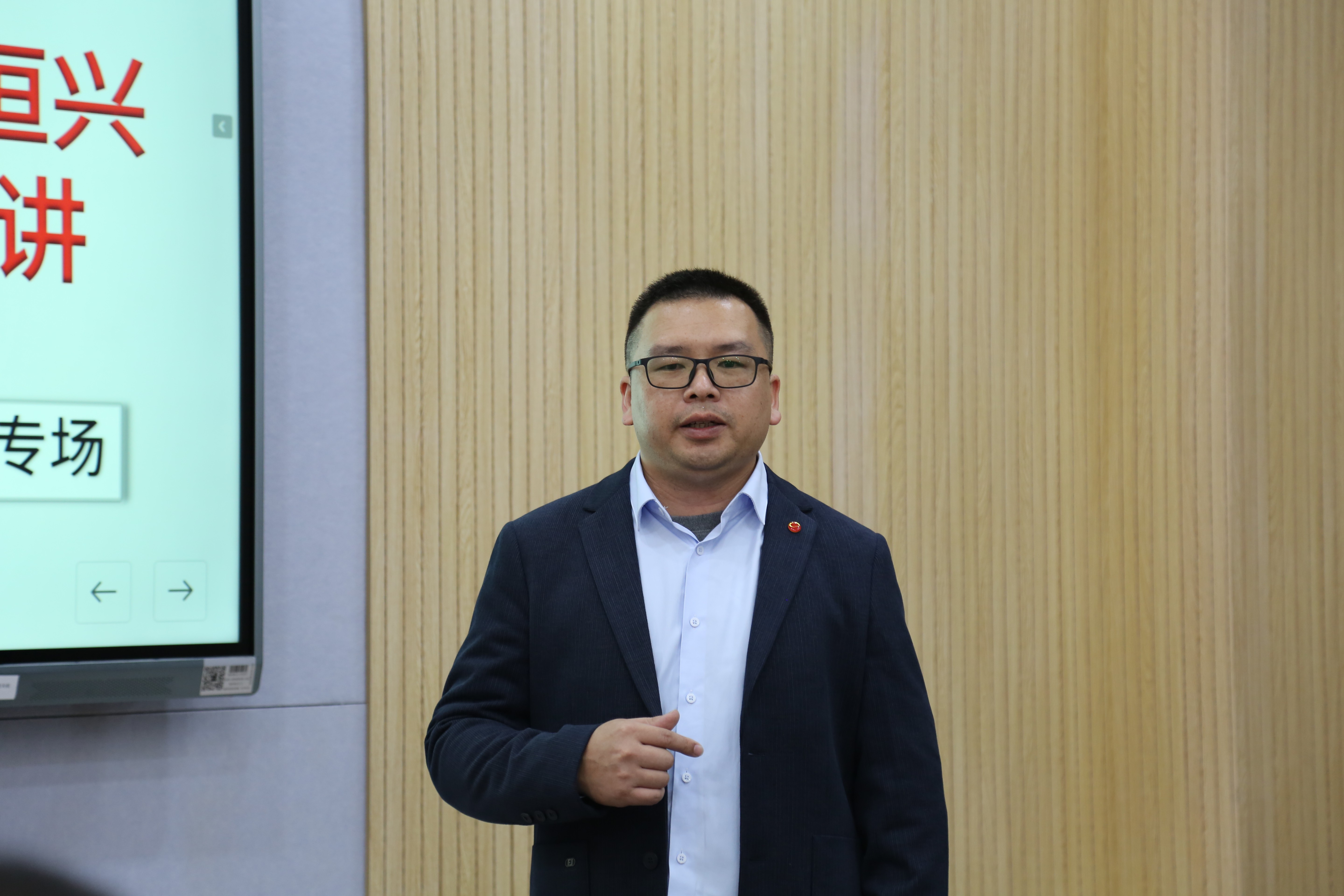 扬翔集团人力资源副总监刘彦来着重介绍了集团近年来在智能化养殖方面展开的探索和取得的成就,并通过列数据、举实例说明了集团为畜牧行业的发展做出的贡献,最后他热情欢迎同学们拥抱智能化趋势,加入扬翔大家庭。