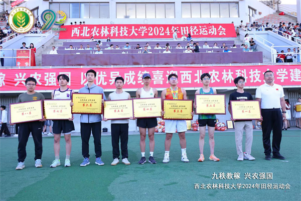 荣获学生男子团体总分第七名(图左二为学生会体育部负责人张闻轩同学代表澳门六合彩高手 领奖)