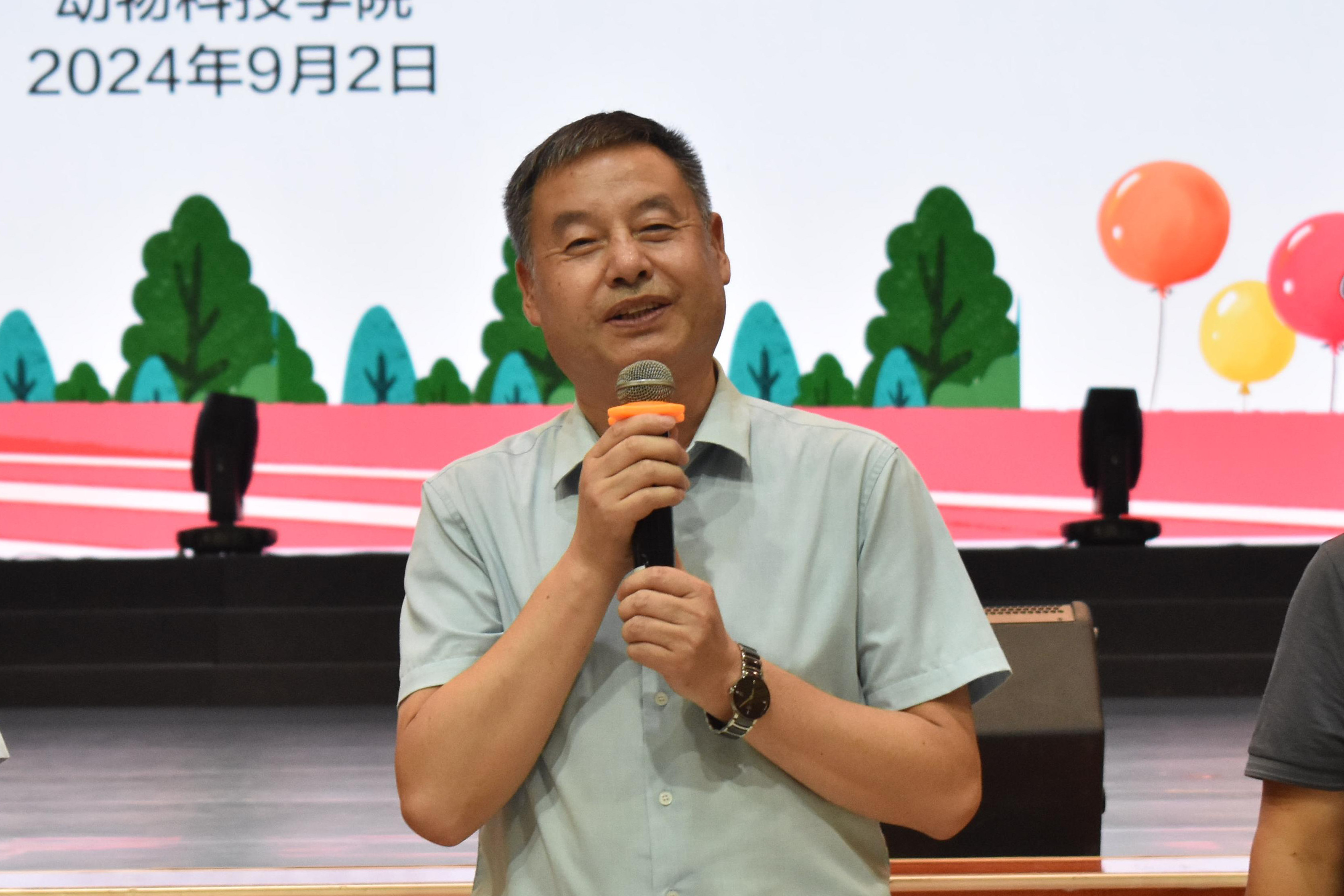 随后宋宇轩研究员和任战军教授分别介绍了益生菌酸羊奶和麻辣兔丁背后的奶山羊产业和兔产业,并从产业出发对我国畜牧业发展现状进行了介绍,同时号召全体新生早立志、立大志,传承强农兴农使命,为国家粮食安全、生态文明、人类健康、乡村振兴贡献青春力量。