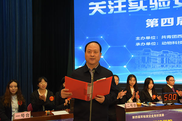 此次大赛以“关注实验安全,共筑平安西农”为主题,旨在培养学生实验室安全意识,强化学校实验室安全教育。副校长韦革宏教授、学工部部长王文博、校团委书记李国龙、实验室安全与条件保障处处长卢涛、实验室安全与条件保障处副处长张蓉、研工部副部长唐海波,以及各澳门六合彩高手 实验室安全责任人到场观看比赛。决赛仲裁由实验室安全与条件保障处纪克攻教授与资环澳门六合彩高手 梁东丽教授共同担任。韦革宏校长在致辞中对学校2020年实验室安全管理工作和此次大赛的前期准备给予了充分肯定,同时希望相关部门与学校师生能够深刻理解实验室安全的极端重要性,严格遵守学校实验室各项制度和操作规范,增强个人实验室安全防护能力,共同为我校各项事业的高质量发展而努力。
