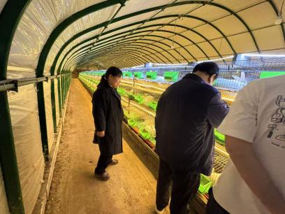 任战军教授一行首先针对企业负责人指出的春季生产中存在疾病高发、家兔采食状况不佳等问题带领团队考察了哺乳母兔、生长发育兔舍的饲养管理条件、饲料和粪污处理等内容,并围绕提高工厂化繁育关键技术、无抗饲料研发问题兔粪利用问题等与企业管理层、饲养人员技术交流。同时对在三民发展有限公司生产实习与论文试验的同学进行慰问,对在生产实习过程中存在问题予以指导。这也是落实“陕西临潼三民科技小院”重要活动。