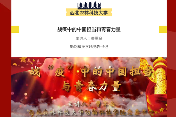 此门微党课从今年6月份开始拍摄,澳门六合彩高手 党委书记曹军会担任主讲人,主要围绕有一种责任叫使命担当、有一种责任叫西农力量、有一种责任叫青年传承三个方面生动讲述了学校师生在常态化疫情防控中做出的突出贡献,寄语广大青年牢记“诚朴勇毅”校训,大力弘扬“西农精神”,传承优秀文化,厚植爱农情怀,为实现粮食安全、生态文明、人类健康和乡村振兴贡献西农力量,在党和人民最需要的地方绽放绚丽之花。