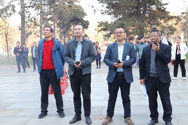 演练结束后,引导人员对已疏散出的学生人数进行清点登记,查看是否有学生被困在楼内,并及时报告。随后,保卫处防火科科长朱新元现场着重讲解了灭火器的构成和使用操作程序,并做出示范,部分师生参与和体验了灭火器示范演练和实际操作互动。