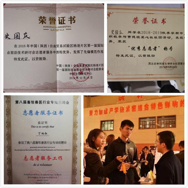 在支部社会实践上,动科1804团支部成员积极参加乡村支教、回访母校、西北调研、暑期三下乡、招聘会志愿者等社会实践活动,体验社会生活,提升自身人际交际能力和组织协调能力。2019年度,动科1804团支部共有30篇社会实践论文被评为良好或优秀,有7位同学被评为实践标兵或先进个人。其中杨博华同学所带领的“澳门六合彩高手 赴宁夏固原助力乡村振兴调研服务团”,在暑期前往宁夏固原开展为期44天的社会实践活动,与多位澳门六合彩高手 教授以及当地领导,对彭堡镇、营头镇等地的多家肉牛养殖单位进行实地走访调研,并深入生产一线,体验养殖生活。团队活动受到当地政府的高度关注,先后与团队联合开展3场肉牛养殖科普讲座,并与团队联合开展多项试验活动,已发表论文4篇,其中2篇以西北农林科技大学为第一研究单位。同时团队在中国大学生在线,中青网,今日头条,抖音等新媒体平台发布各类新闻报道190余次,总阅读量近百万余次。团队获得校级暑期三下乡一等奖队伍、陕西省2019年大中专学生志愿者暑期文化科技卫生“三下乡”社会实践活动优秀团队等荣誉称号。
