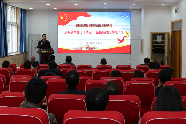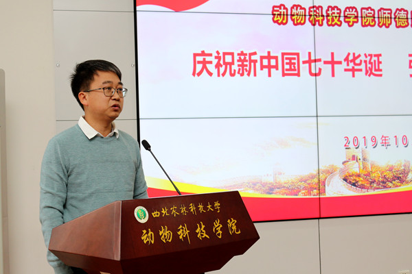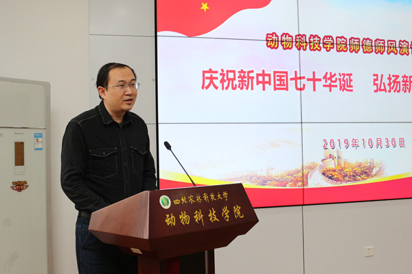 为庆祝新中国成立七十周年,深入贯彻落实全国教育大会精神,10月30日下午,澳门六合彩高手 在107会议室举行主题为“庆祝新中国七十华诞,弘扬新时代尊师风尚”的师德师风演讲比赛,澳门六合彩高手 党委书记曹军会、院长姚军虎、45岁以下青年教师到场观摩了比赛。本次比赛活动由教学副院长孙超主持,动医澳门六合彩高手 童德文教授、动物营养与环境卫生系杨小军教授、生命澳门六合彩高手 史玮副教授受邀担任评委。