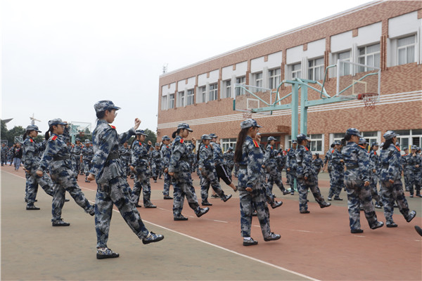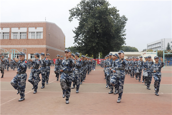 当太阳的光辉逐渐洒满球场,他们的口号声、踏步声也响彻了球场。教官的指令下达,同学们立刻按照要求做出相应的动作,真正做到令行禁止。他们挺直腰板,军姿站得标准,尽管有腿脚酸痛,也无法阻挡他们长剑如虹的气势。走踏步的精神抖擞、动作一致,走齐步的姿态潇洒、落落大方,象征着对伟大祖国的敬意的敬礼端庄肃穆,同学们脸上始终带着坚毅认真的表情,每一名动科学子都是冉冉升空的一颗闪亮的新星!