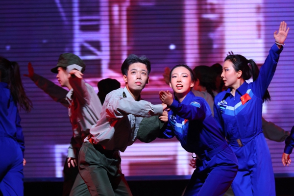 群舞《“星”火永相传》以“东方红一号”成功发射到“北斗”组网成功这50年的历史征程为背景,讲述了两代航天工作者在不同时间轴,共同奋斗,最终圆梦太空的故事。舞蹈以航天梦、卫星梦为基础,讴歌科研英雄,展现一代代航天人生命不息,奋斗不止的航天精神、科研精神。