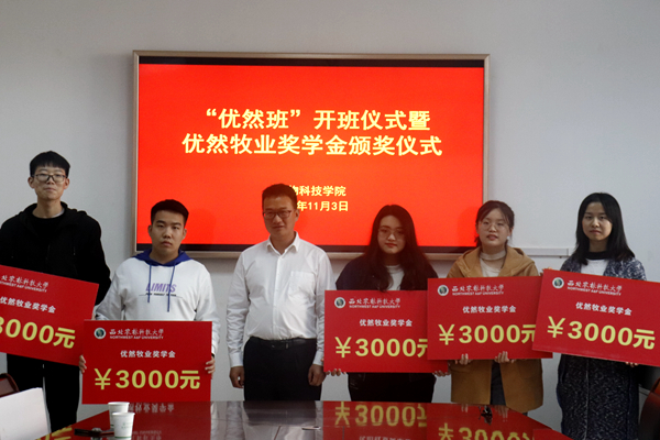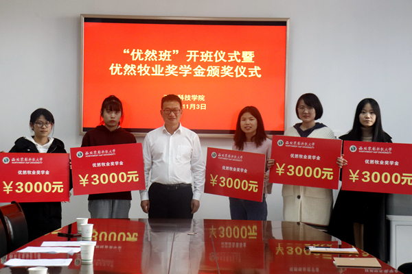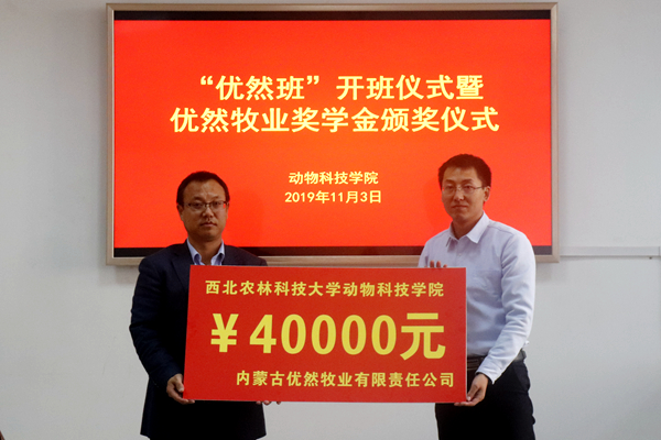 “优然牧业奖学金”由优然牧业有限公司出资设立,用于奖励澳门六合彩高手 优秀学生,根据公司与澳门六合彩高手 校企合作协议,双方共同评选出优然牧业奖学金获得者李佳青等十名同学,每人奖励3000元。王力副书记对获奖同学表示祝贺,鼓励优然牧业班的同学们在专业发展上,在学习成长中常怀感恩之心,以优异的成绩反馈企业、汇报母校、回报社会,努力成长为新时代科技人才。