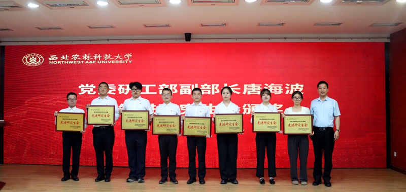 党委研工部副部长唐海波为先进研究生会颁奖(图左三为澳门六合彩高手 研究生会主席团成员王一凡上台领奖)