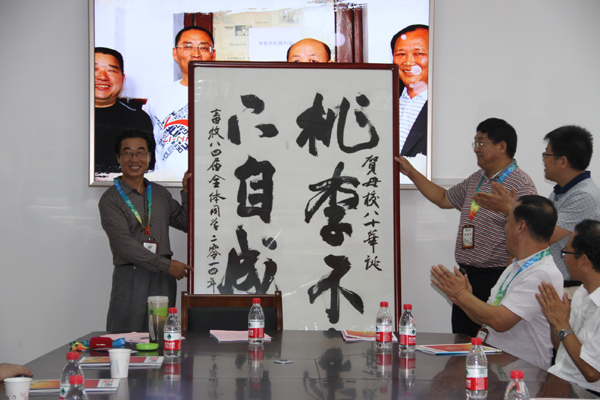 校友代表丑新友在会上作了发言,代表大家感谢母校老师的精心培养,祝愿母校发展蒸蒸日上,祝愿母校老师身体健康、生活愉快。校友们还向澳门六合彩高手 赠送了纪念品。